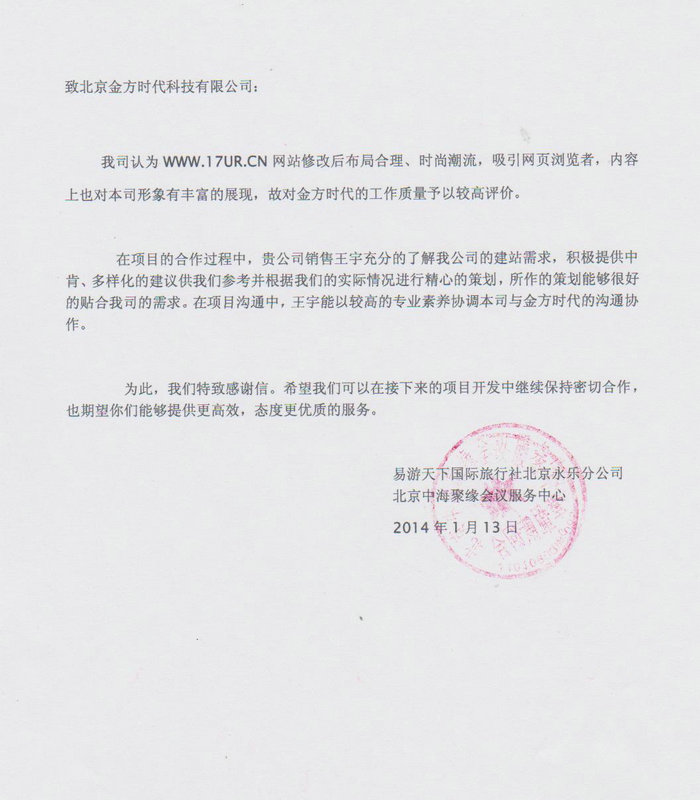 易游天下國際旅行社北京永樂分公司